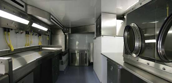 Germfree’s Mobile Laboratories are designed to meet the specific requirements of the customer. Labs can be built on a wide variety of platforms including trucks, trailers and shipping containers. Mobile laboratory platforms provide efficient use of space, and flexibility. Because the laboratory is custom-designed, the possibilities for equipment integration to meet specific and diverse challenges are nearly limitless. Mobile labs are designed to be easily cleaned and decontaminated using on-board gaseous decontamination generators.