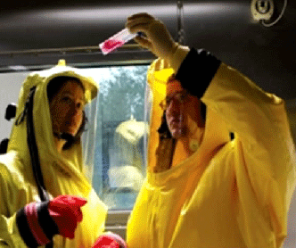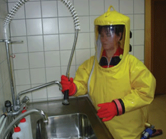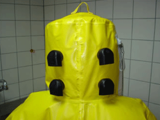Apart from other protective measures international regulations for laboratories, where viruses, bacteria, spores etc. are handled, request the availability of protective suits that work with an external air supply that is independent from the ambient air.