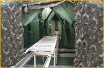 The system developed by OWR combines high flexibility and robustness. The VTS can be used with all kinds of shower tents and decontamination containers (straight line) providing a flat lane for the transportation of stretchers. Most types of civil and military strechters can be used. OWR can also supply a universal decontamination stretcher made of stainless steel.